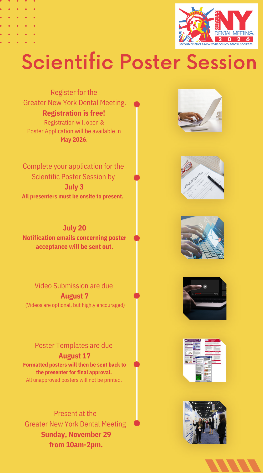 The Greater New York Dental Meeting would like to invite Dentists, Hygienists, Dental Technicians, Postgraduates, and Residents, as well as, Dental Students, Dental Hygiene Students and Dental Technician Students to participate in our Scientific Poster Session.